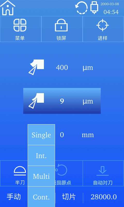 开启半刀模式,技术老师可在12点-6点或者12点-9点方向转动手轮修片,无需全轮转动。搭配步进电机,进样距离以修片厚度为准,减少修片行程,提高修片效率的同时防止样本粗修过度。半刀模式启停方便。