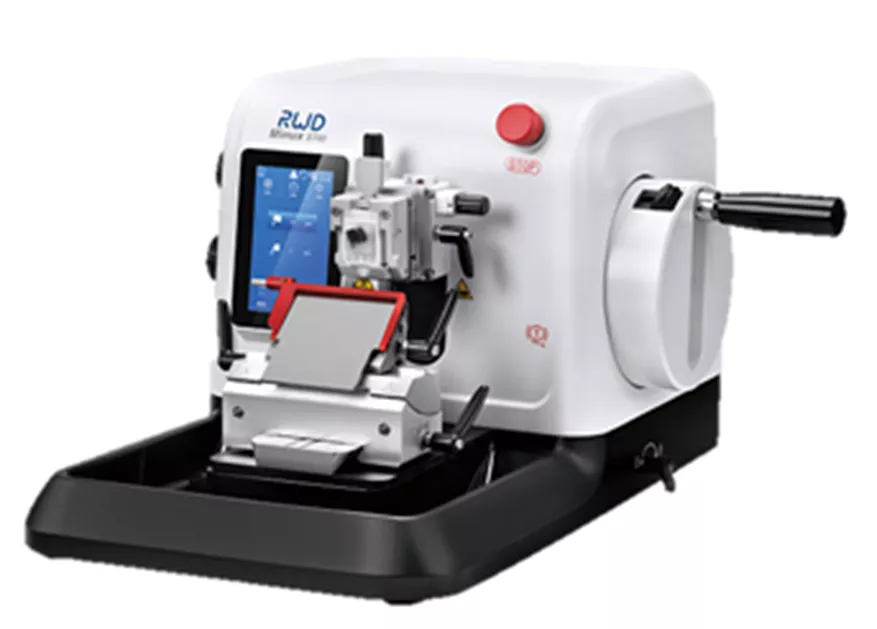Minux®轮转式切片机应用于石蜡包埋组织切片,采用精密传动技术,实现0.5μm进样幅度,确保高精度和高质量切片。专利可视指针标识,让样本角度调节可视,定位精准快捷。自动切片功能,用户无需学习切片技术,机器自动切出高质量片子。废屑盘采用特殊涂层,不沾蜡,易清理维护。