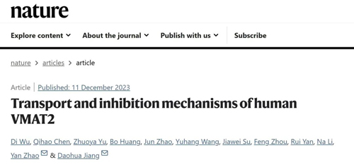 不久前,中国科学院物理研究所/北京凝聚态物理国家研究中心姜道华团队和中国科学院生物物理研究所及赵岩团队合作,通过冷冻电镜单颗粒技术重构出囊泡单胺转运蛋白VMAT2处于不同构象的高分辨率结构,揭示了VMAT2在运输单胺底物过程中的构象变化及转运机制。该研究成果以“Transport and inhibition mechanisms of human VMAT2”为题在国际学术期刊《自然》(Nature)发表。
