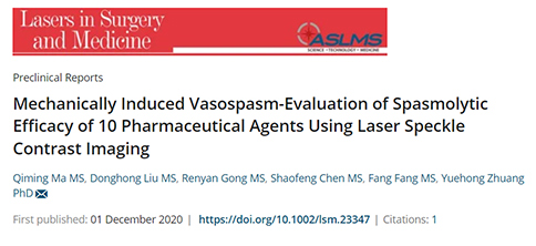 Ma Q , Liu D , Gong R , et al. Mechanically Induced Vasospasm-Evaluation of Spasmolytic Efficacy of 10 Pharmaceutical Agents Using Laser Speckle Contrast Imaging[J]. Lasers in Surgery and Medicine, 2020(5).