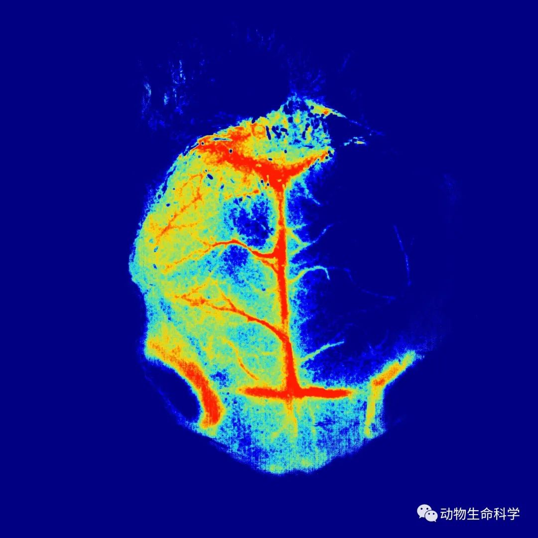 (7) 手术结束后应用激光散斑血流成像系统监测大脑皮层血流,当看到大脑皮层血液血流降低70%~80%,说明模型制备成功。