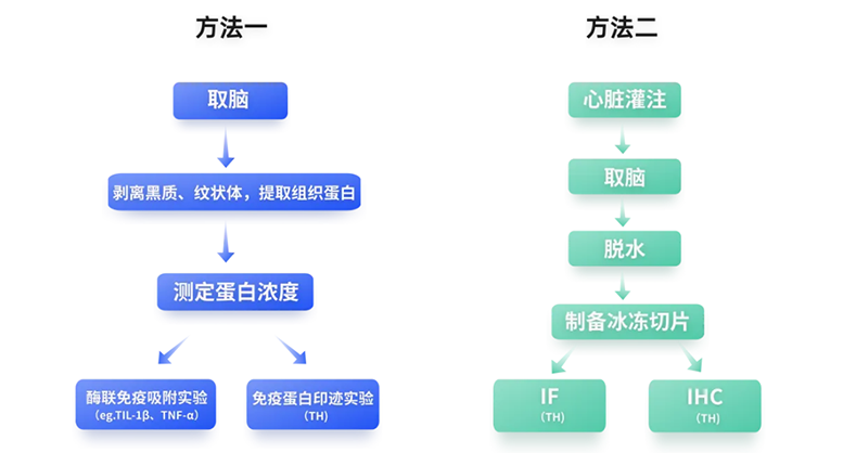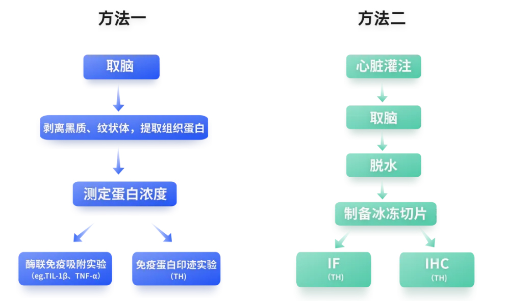 Tip:高炎症水平是退行性神经疾病的主要必要条件[2],因此通过检测IL-1β、TNF-α等炎性因子含量验证PD造模的效果;