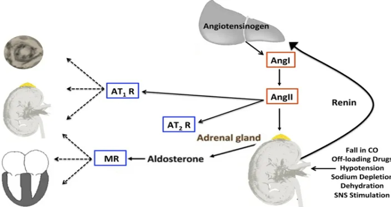 血管紧张素Ⅱ(Ang Ⅱ)是一种强效血管收缩剂,是RAAS的主要效应物,是由血管紧张素Ⅰ在血管紧张素转换酶的作用下水解产生的多肽物质。